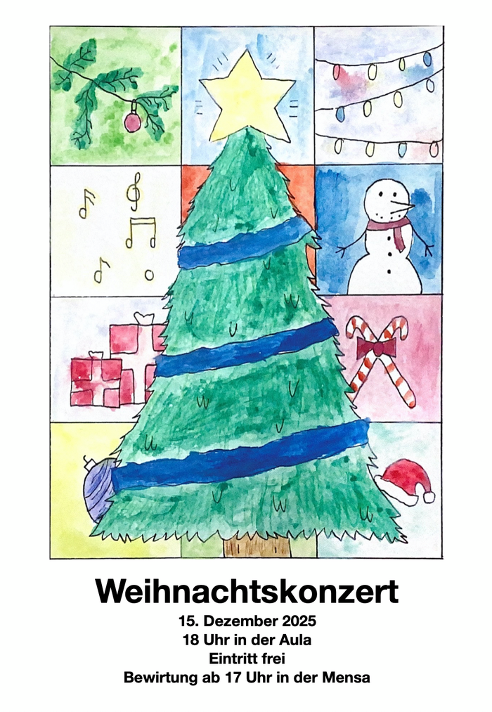 traditionell hatten wir in den vergangenen Jahren immer am letzten Montag vor den Weihnachtsferien einen Weihnachtsbasar der Klassen 5 - 7 vor unserem Weihnachtskonzert. Der Basar kann leider in diesem Jahr nicht stattfinden. Zu viele Lehrkräfte fallen gerade in den benannten Klassenstufen krankheitsbedingt aus, so dass wir uns zu diesem Schritt entschlossen haben. Wir können aber die Weihnachtszeit trotzdem stimmungsvoll einläuten. Am Montag, 15.12. wird ab 17 Uhr in unserer Mensa eine Bewirtung mit Gebäck, Snacks, Punsch und Kaffee durch den Q1-Jahrgang stattfinden. Auch der Verein der Freunde ist dabei und wird Poffertjes anbieten. Kommen Sie gern vorbei und genießen anschließend gestärkt ab 18 Uhr das Weihnachtskonzert mit zahlreichen Mitwirkenden. Herzliche Einladung!