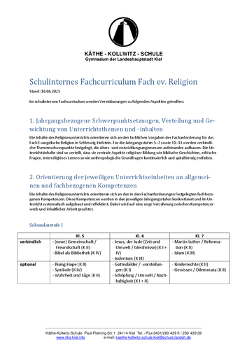 (Der Religionsunterricht orientiert sich an den Fachanforderungen des Landes Schleswig-Holsteins: https://lehrplan.lernnetz.de/index.php?wahl=227)